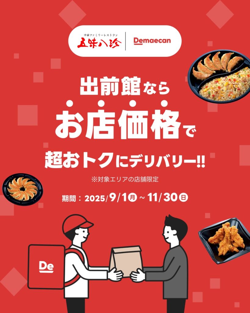 【店舗限定】出前館なら「お店価格」で超おトクにデリバリー!! 新着情報 2025.09.15 ☆出前館キャンペーンご利用可能店舗はこちら!☆ 五味八珍 浜松駅ビル メイワン店 五味八珍 新津店 五味八珍 三方原店 五味八珍 高丘店 五味八珍 天王店 五味八珍 根上り松店 五味八珍 内野店 五味八珍 笠井店 五味八珍 三島店